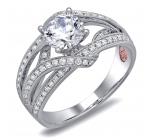 Cathedral setting split shank engagement ring featuring pavé-set round diamonds set under the head and halfway down the shank.